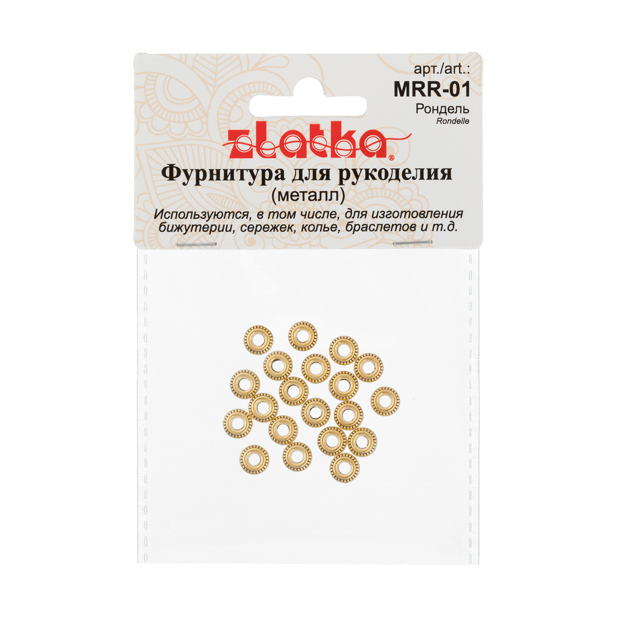 Рондель " Zlatka" MRR- 01 - небольшие декоративные бусины, используются для разделения бусин в украшении, например, один вид от другого или в качестве самостоятельного декоративного элемента. Размер: 7 мм. Размер отверстия: 3 ммСостав: 100% сталь. Использование качественной фурнитуры играет очень важную роль при изготовлении бижутерии. От правильного выбора подвески, коннектора, замка или любой другой связующей части зависит целостность готового изделия. Сообщить о неточности в описании
